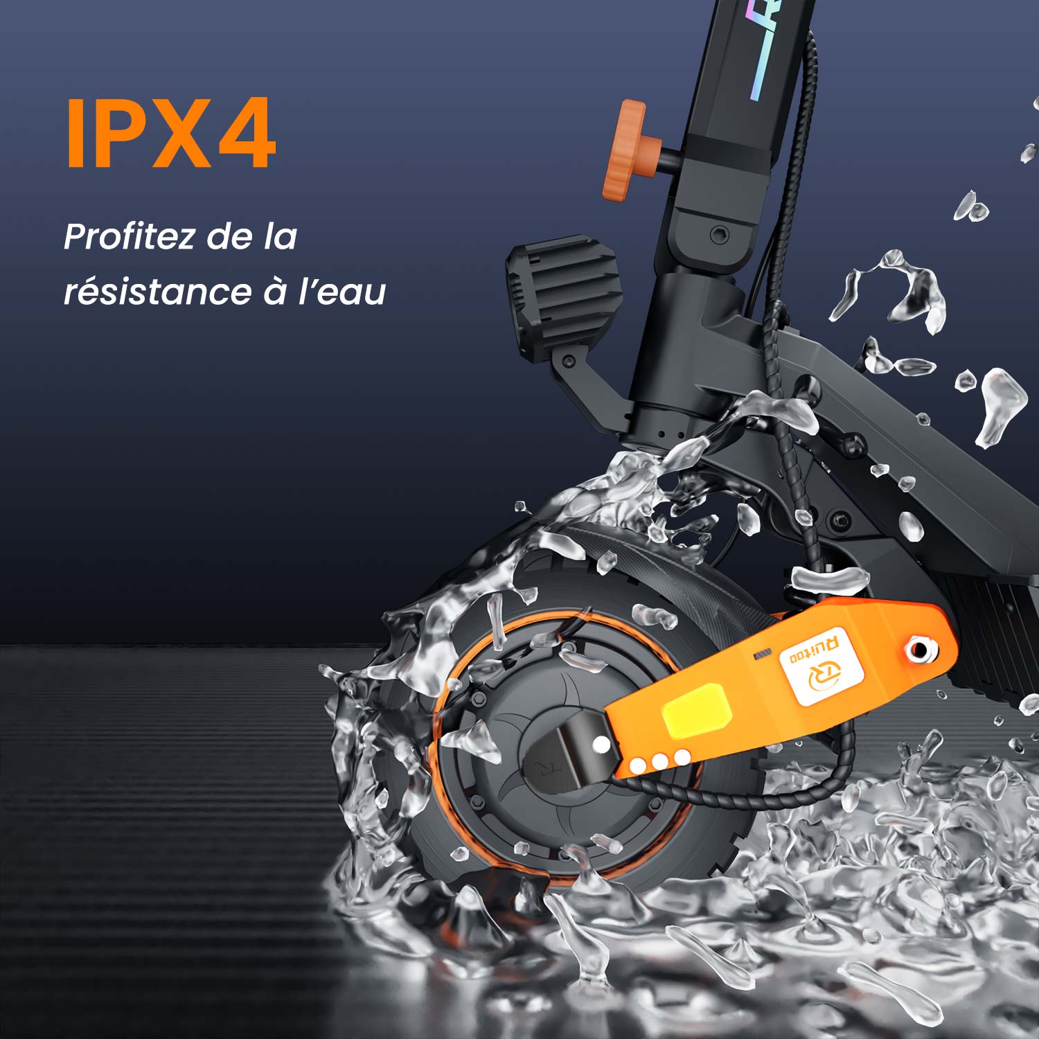 Dotée de pneus tout-terrain de 10’’, cette trottinette électrique assure une excellente adhérence et une conduite stable aussi bien sur route que sur chemin irrégulier.