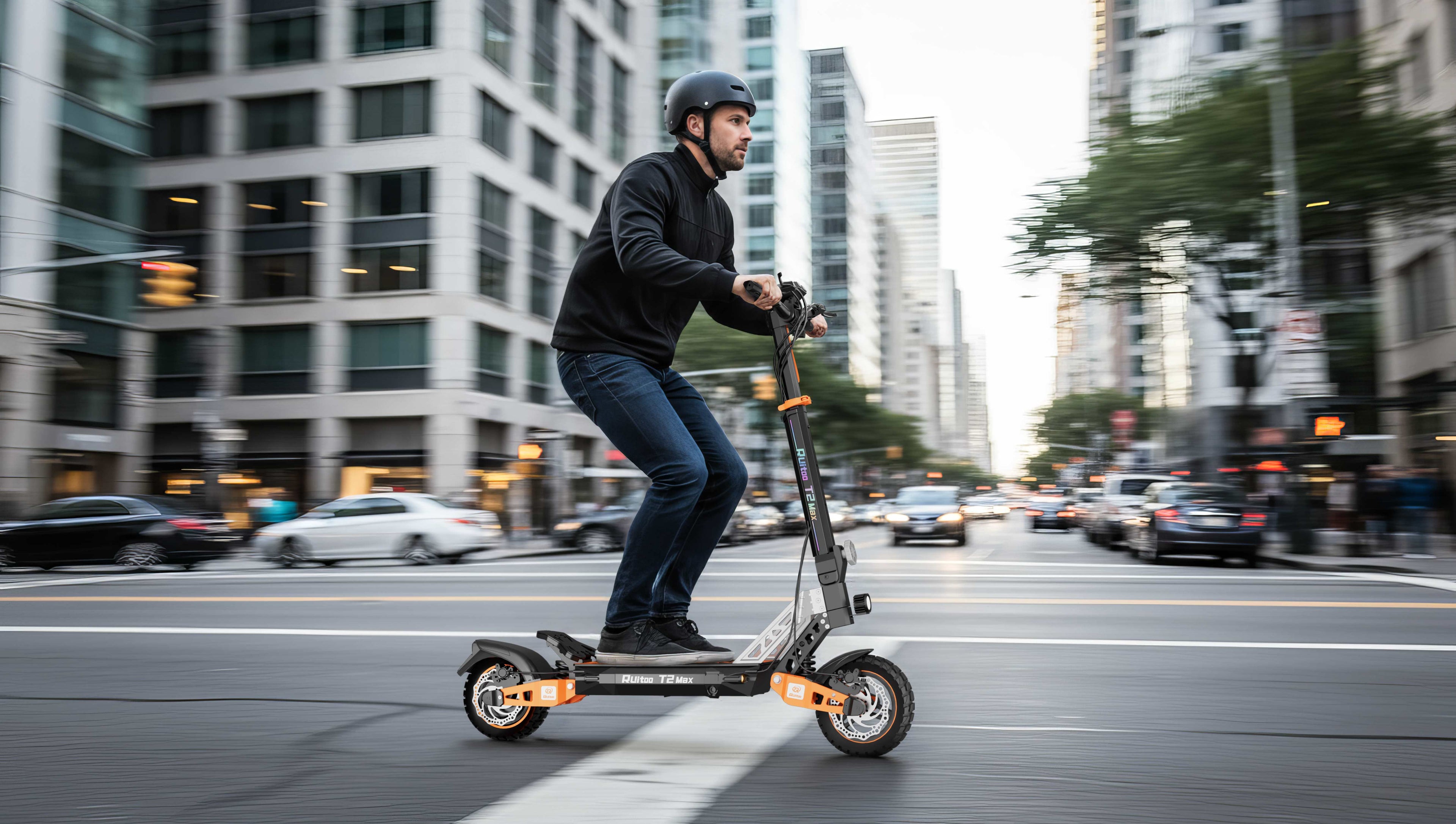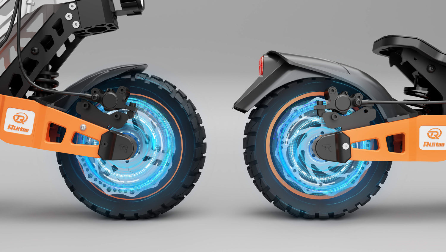 Dotée de freins à disque hydrauliques de 140 mm, la Ruitoo T2 Max assure un freinage précis, puissant et sûr, même à haute vitesse ou sur terrain accidenté.